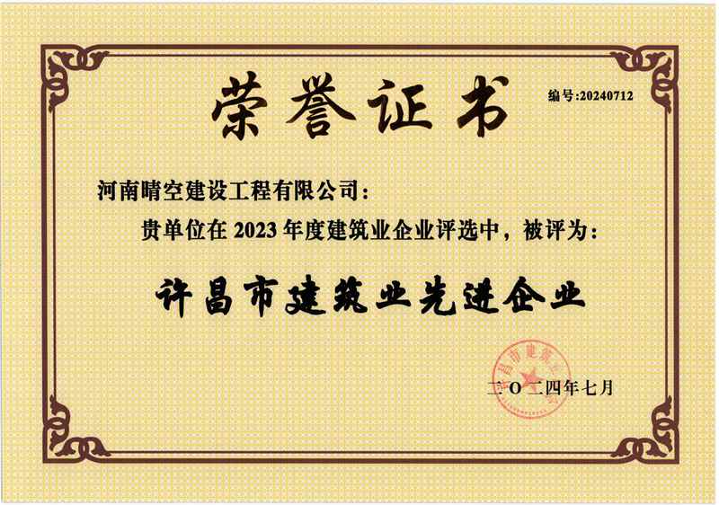 2024年许昌市建筑业先进企业